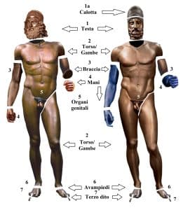Lo studio pubblicato sull’ Italian Journal of Geosciences, adesso aggiunge altri fondamentali tasselli a questo mosaico indiziario, sondando tre linee di ricerca. Le prime due hanno confermato la netta differenza tra le terre di saldatura e quelle di fusione. Le prime proverrebbero appunto dalla foce dell’Anapo, le altre, ricche i granitoidi, hanno mostrato una forte corrispondenza con quelle del delta del Crati in Calabria, ancor più che di Argo, come era stato proposto in passato. Ciò significa che le statue, probabilmente, dovettero essere realizzate a sezioni separate in una officina di Sibari per poi essere saldate e collocate a Siracusa. Si tratta di un dato che avvalora l’ipotesi della paternità di Pitagora da Reggio, scultore molto attivo alla corte siracusana dei Dinomenidi, il quale, secondo un recente studio francese, avrebbe realizzato, proprio nel suo atelier di Sibari anche l’Auriga di Delfi, altra famosa commissione siciliana dei Dinomenidi.