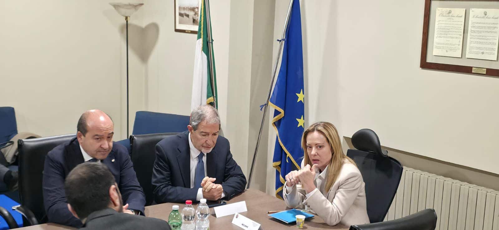 Meloni a Catania per il post-ciclone, Musumeci: “Segnale dell’impegno del governo a sostegno delle famiglie colpite”